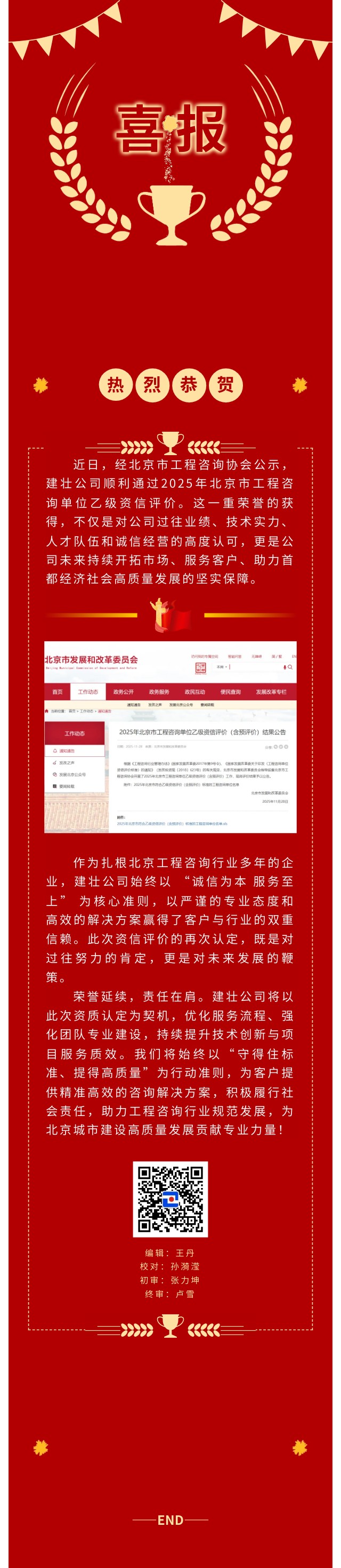 喜报 | 再获认可!建壮公司成功通过2025年北京市工程咨询单位乙级资信评价